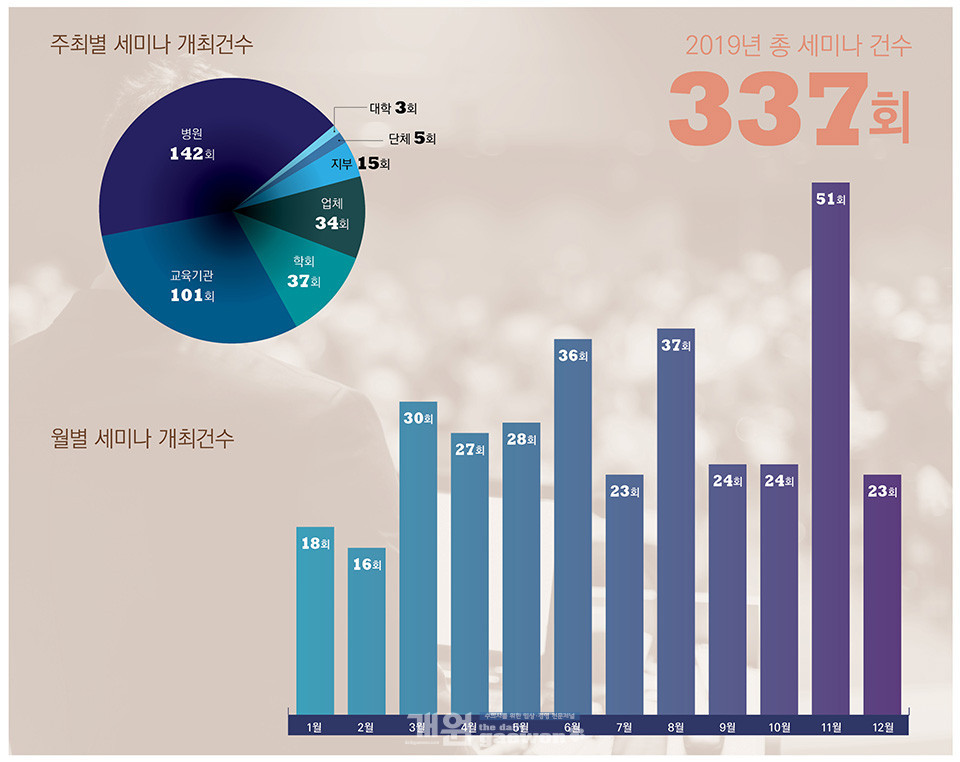 2019년 올 한 해 동안 총 337회의 세미나가 개최돼 전년대비 20%나 증가한 것으로 조사됐다. 최근 5년간 평균 개최건수인 312회보다도 8%나 높은 수치다.