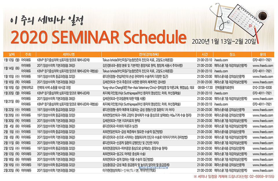 [세미나 캘린더] 2020년 1월 13일~2020년 2월 20일