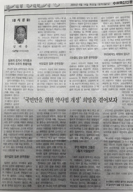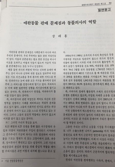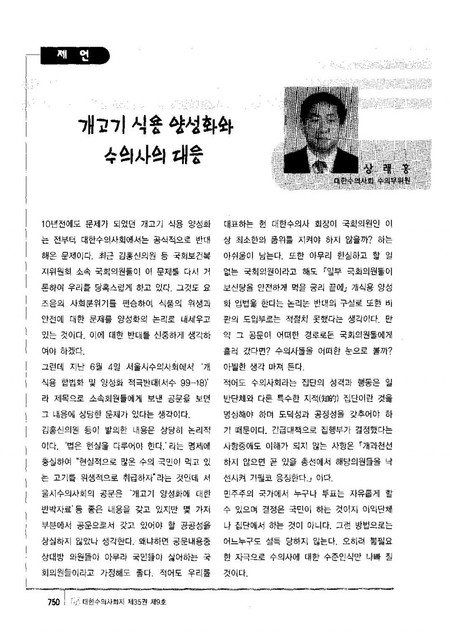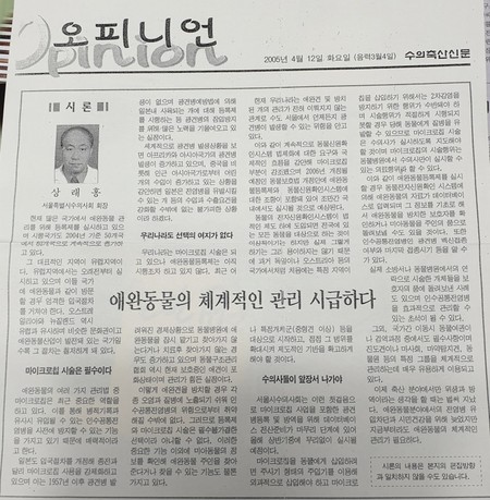 축산신문 컬럼 '300자 발언대' - 상래홍 서울시수의사회장 (2003.03.05)