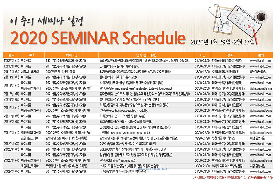 [세미나 캘린더] 2020년 1월 29일~2020년 2월 27일