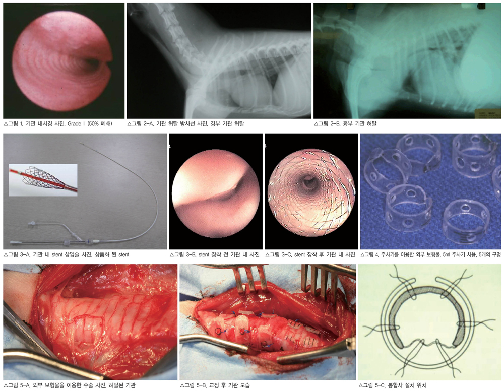 일반적으로 실시되는 수술 방법으로는 기관 외부 보형물 설치법과 기관 내 stent 삽입법이 있습니다.
