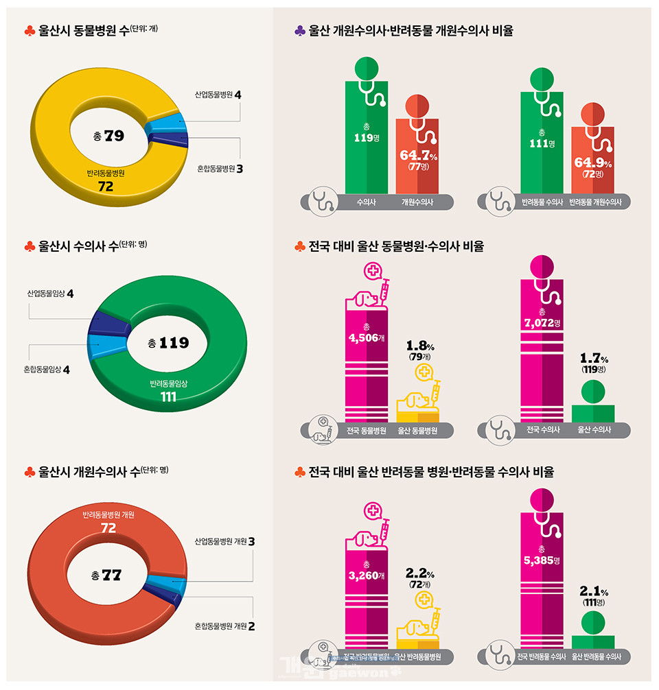 개원한 수의사는 전국 총 4,283명 중 1.8%(77명)가 울산에 개원했다. <편집자주>