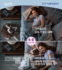 한국조에티스(주)(대표 이윤경)가 출시한 개 아토피 치료제 ‘CYTOTPOINT(사이토포인트)’가 빠르고 긴 효과에 뛰어난 안전성으로 수의사와 보호자들로부터 각광 받고 있다.