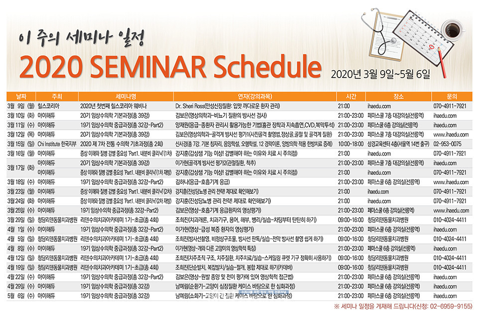 [세미나 캘린더] 2020년 3월 9일~2020년 5월 6일