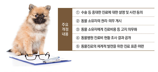 이번 수의사법 개정안에 따르면, 간단한 진료부터 표준화된 진료까지 진료비용을 책자나 홈페이지 등을 통해 동물 소유자들에게 사전에 고지해야 하며, 수술, 수혈 등의 중대한 진료를 할 경우에는 진료내용과 진료비를 사전에 반드시 설명해야 한다.
