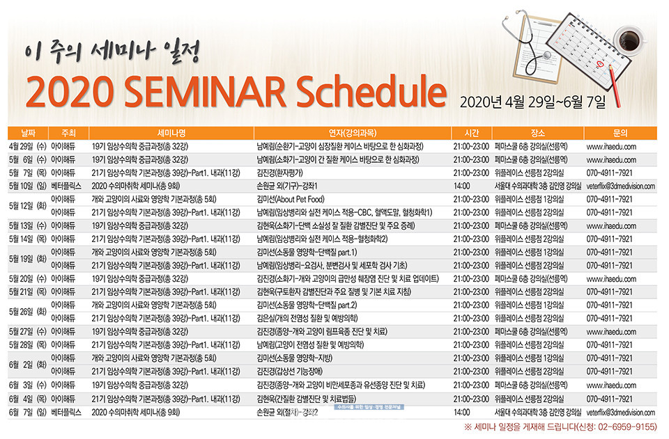 [세미나 캘린더] 2020년 4월 29일~2020년 6월 7일