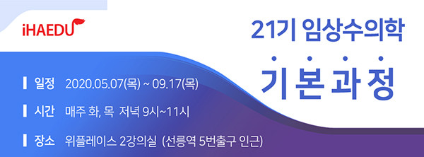 코로나19가 진정국면에 접어들면서 아이해듀는 정부 지침에 따라 4월말~5월초로 이어지는 황금연휴까지 거리두기 실천에 동참하고, 이후 5월 7일 ‘21기 임상수의학 기본과정’, 5월 12일(화) ‘개와 고양이의 사료와 영양학 기본과정’을 시작하기로 결정했다.