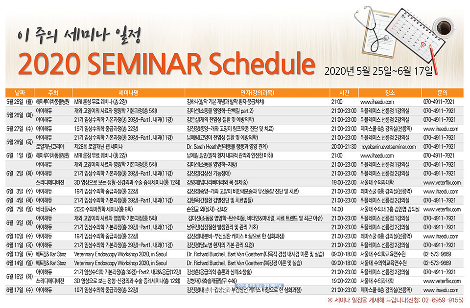 [세미나 캘린더] 2020년 5월 25일~2020년 6월17일