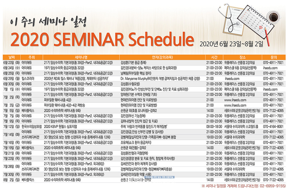 [세미나 캘린더] 2020년 6월 23일~2020년 8월 2일