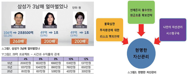 마지막으로 나만의 자산관리시스템 구축전략이 필요하다. 일명 포트폴리오 전략이라고 말하기도 하지만 다양한 전문가와 함께 하는 맞춤형 자산관리 전략이 필요하다.