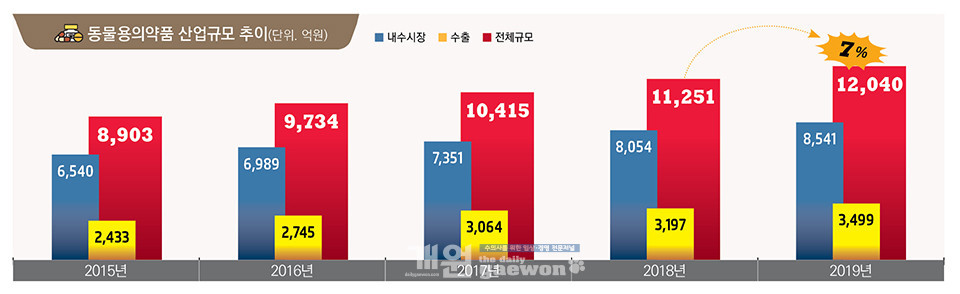 동물용의약품 산업규모가 지난해 1조2,040억 원으로 전년대비 7% 성장한 것으로 나타났다.