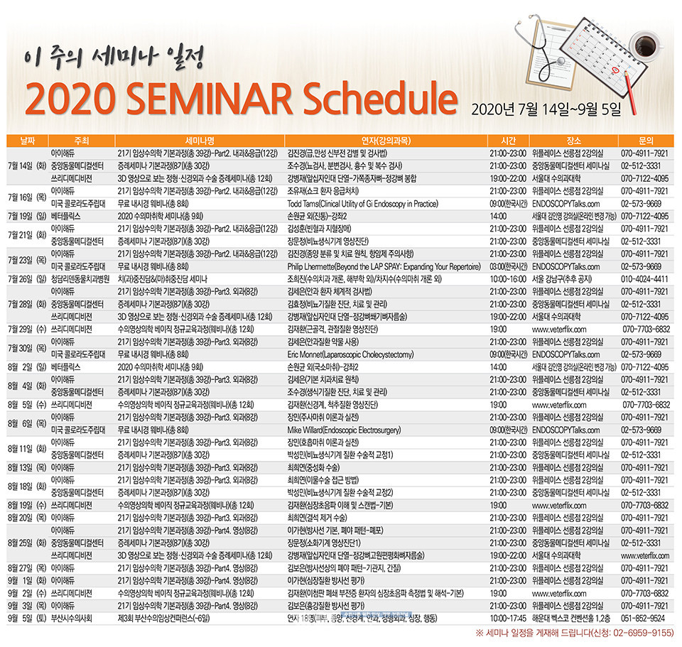 [세미나 캘린더] 2020년 7월 14일~2020년 9월 5일