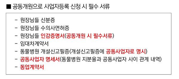 공동개원은 원장 2명 이상이 사업자등록증과 개설신고필증에 대표자로 이름이 올라간다.
