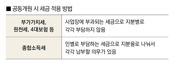 부가가치세와 원천세, 4대보험 등은 사업장을 기준으로 발생한다. 즉, 사업장에 부과되는 부가가치세 등은 지분율과는 관계없이 사업장에서 내는 세금이다.