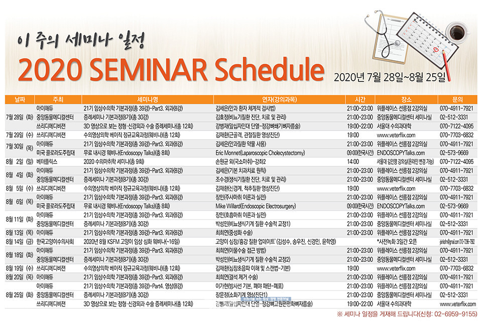[세미나 캘린더] 2020년 7월 28일~2020년 8월 25일