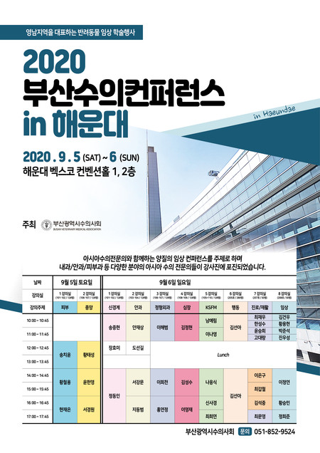 이번 ‘제3회 부산수의컨퍼런스 in 해운대’는 9월 5일(토)~6일(일) 이틀에 걸쳐 부산 해운대 BEXCO 컨벤션홀 1,2층에서 치러진다.