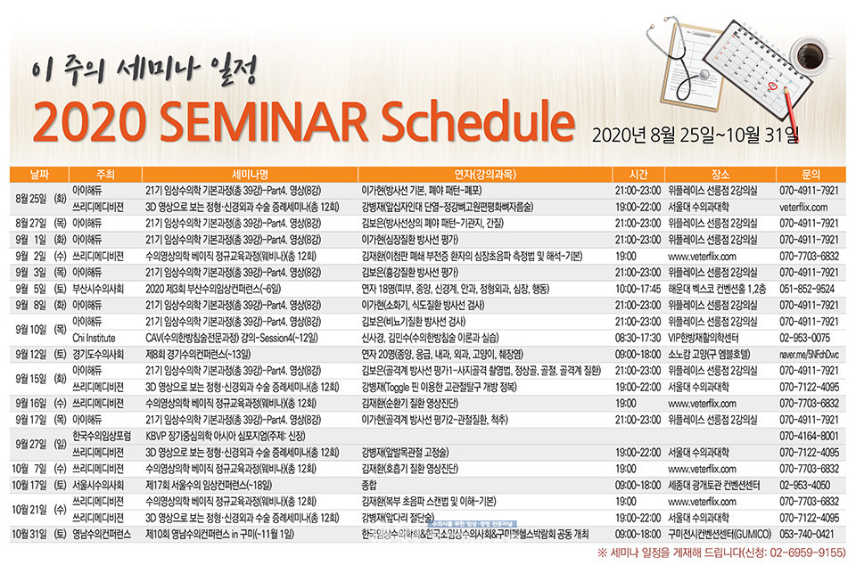 [세미나 캘린더] 2020년 8월 25일~2020년 10월 31일
