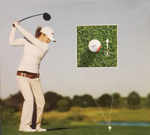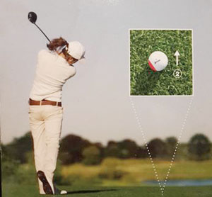 볼의 안쪽 면은 타격하려 하면 자연스럽게 우측 어깨가 앞으로 나가려는 힘을 억제시킬 수 있고, 양팔과 클럽이 올바른 다운스윙의 궤도로 진입해 아웃 사이드 인 스윙을 교정할 수 있게 됩니다.