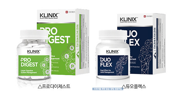 녹십자수의약품(주)이 수의사 처방 보조제 브랜드 KLINIX의 신제품 ‘프로다이제스트(PRODIGEST)’와 ‘듀오플렉스(DUOFLEX)’를 출시했다.