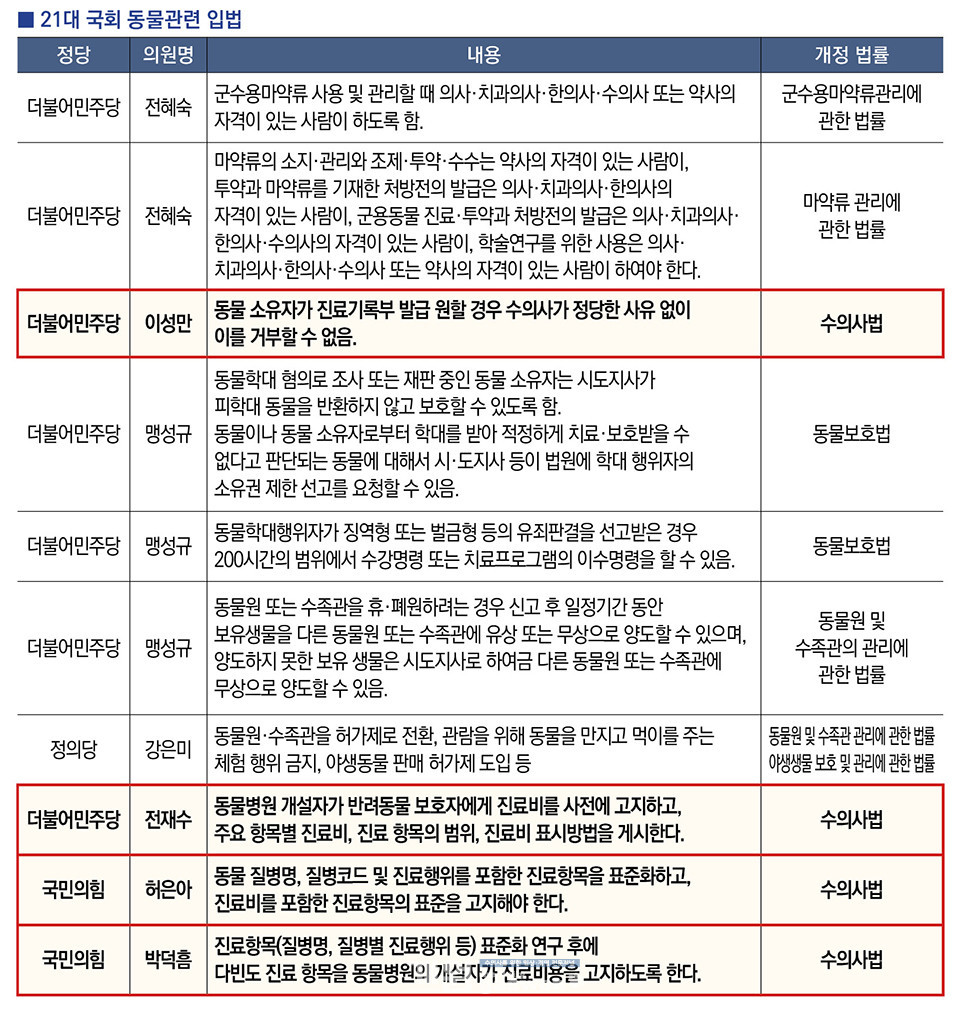 21대 국회가 들어서면서 수의계 관련 법안 발의가 증가하고 있다.