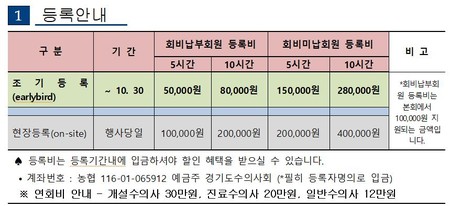 이번 컨퍼런스는 둘째 날 종일 등록 시 연수교육 10시간이 인정되며, 조기등록은 10월 30일(금)까지이다.