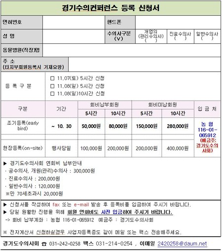 경기도수의사회(회장 이성식, 이하 경수회)의 ‘2020 경기수의컨퍼런스’가 11월 7일(토)~8일(일) 당초 계획했던 일산 소노캄 고양에서 대면 개최하기로 최종 확정했다.