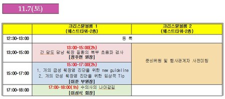 둘째 날은 5개 강의실에서 종양, 응급, 내과, 외과, 고양이를 테마로 오전 9시부터 오후 7시 30분까지 진행한다.