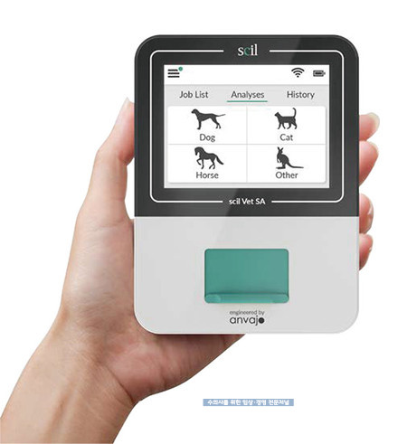 최초로 손바닥 만한 기기로 오줌의 모든 고형물을 분석하는 ‘scil Vet SA’는 홀로그램 테크닉과 딥러닝, 인공지능을 요침사 분석에 도입해 정확성을 극도로 높인 최첨단 기기다.