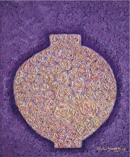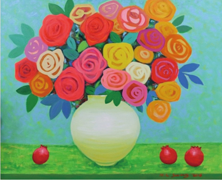 △달 항아리에 핀 장미, 100호 F, 캔버스에 유채, 2016년