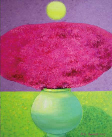 성하림의 그림세계에서 달항리에 핀 꽃<연작>은 그녀가 오랜 시간 천착해 온 소재들의 완성으로 모든 창조를 실험하고 기쁨을 따라간 흔적들이 모여 집대성한 결과다.