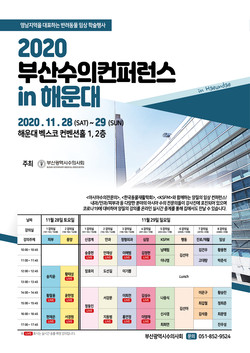부산시수의사회(회장 이영락, 이하 부산지부)가 주최하는 ‘2020 부산수의컨퍼런스 in 해운대’가 11월 28일(토)~29일(일) 양일간 해운대 벡스코 컨벤션홀 1,2층에서 개최된다.