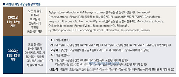 동물약국 개설자가 동물용의약품 중 주사용 항생물질 제제와 생물학적 제형을 수의사 또는 수산질병관리사의 처방전 없이 판매가 불가하도록 규정한 것도 눈에 띄는 대목이다.