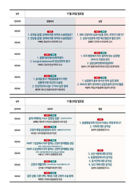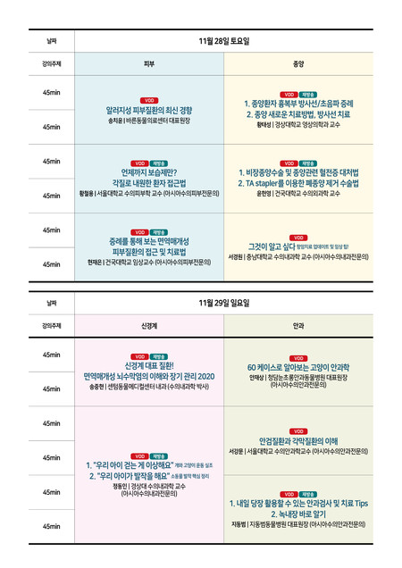 이에 따라 강의는 28일(토) 피부, 종양 세션, 29일(일) 신경계, 안과, 정형외과, 심장, KSFM, 행동 세션이 예정대로 진행되며, ‘진로/재활’과 ‘임상’ 세션 및 ‘런치 세미나’는 취소됐다.