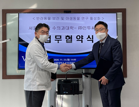 서울대학교 수의과대학과 ㈜인투씨엔에스(대표 허성호)가 지난 11월 23일 서울대 수의과대학과 연구 협력을 위한 전략적 업무 협약을 체결했다.