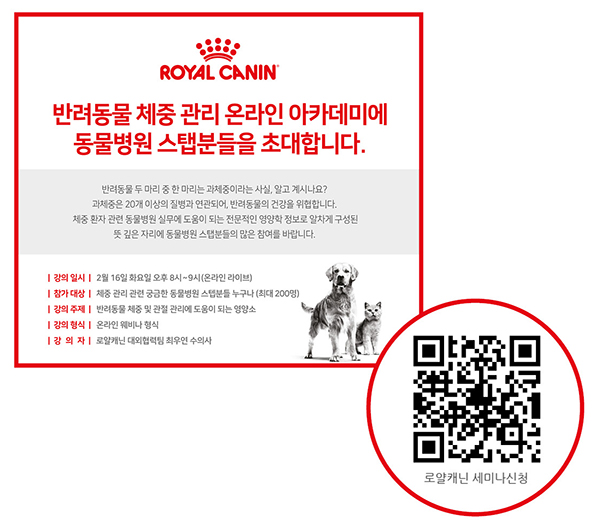 로얄캐닌코리아가 새해 첫 행사로 ‘체중관리 온라인 아카데미’를 진행한다.