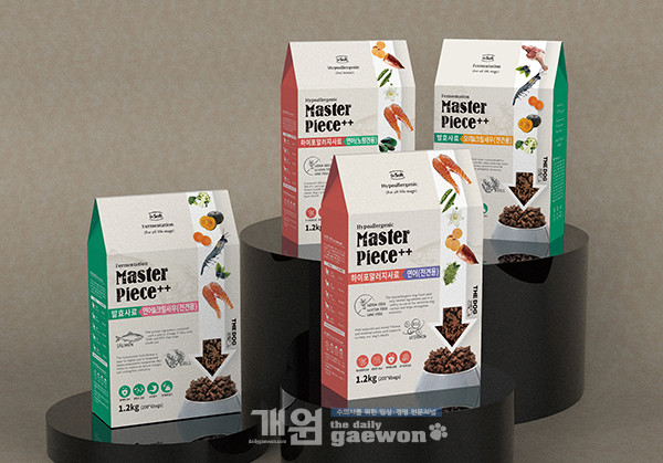 ‘마스터피스(명작) 사료’는 이 장점을 극대화 하고 특화된 원료를 사용해 고급화 시킨 △하이포알러지 사료(2종) △발효사료(2종)를 출시해 인기다.
