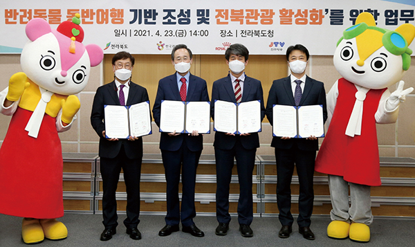 로얄캐닌코리아는 지난 4월 23일 한국관광공사·전라북도·JTV 전주방송과 전북지역 반려동물 동반여행 기반 조성 및 전북관광 활성화를 위한 업무협약을 체결했다.