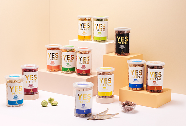기존의 ‘예스아임리얼’은 뼈 간식, 저온건조 육포 간식, 동결건조, 쿠키 간식, 포켓타입 간식 등 반려동물의 식습관과 반려인의 라이프스타일에 맞추어 국내 최초로 체계화하여 제안한 간식이다. 이번 신제품은 신선한 원물 그대로 -50도 이하에서 동결건조하여 부드러운 식감으로 나이에 상관없이 반려견, 반려묘 모두에게 인기인 동결건조 라인업을 12종 추가했다.