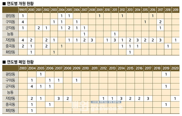 광진구가 다른 지역에 비해 개원과 폐업이 활발한 것은 도시 개발이 아닌 동일 의료기관의 잦은 개·폐업이 원인이다.