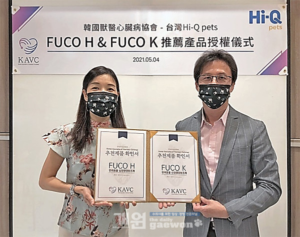 노령동물의 증가로 적합한 영양보조제의 선정과 그 중요성이 높아지고 있는 가운데, 한국수의심장협회(회장 서상혁, 이하 KAVC)가 처음으로 도입한 추천제도에 대만 Hi-Q pets의 심장 영양보조제 ‘FUCO H’와 신장 영양보조제 ‘FUCO K’가 선정됐다.