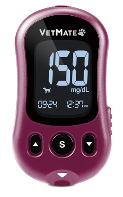 ‘VetMate’의 사용 효소는 ‘GDH-FAD’로 측정범위는 10~600mg/dL이며, 신선한 정맥혈과 모세혈에서 사용이 가능하다. 메모리는 500회까지 가능하며, 개와 고양이 두 가지 타입 모드에서 측정이 가능하다.