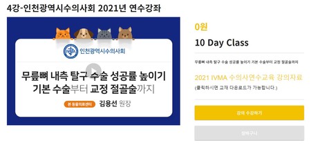 강의는 김용선(본동물의료센터) 원장이 진행하며 연제는 다음과 같다.