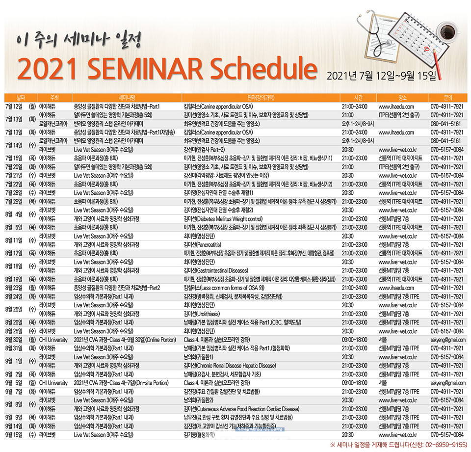 [세미나 캘린더] 2021년 7월 12일~9월 15일