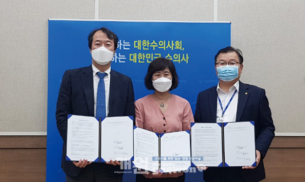 대한수의사회(회장 허주형, 이하 대수회)가 지난 1일 ㈜한국조에티스(대표 이윤경)와 생명공학기업 옵티팜(대표 한성준·김현일)과 동물복지 향상을 위한 MOU를 체결했다.