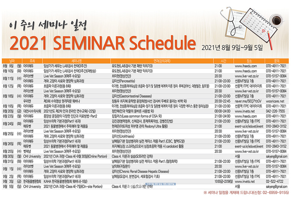 [세미나 캘린더] 2021년 8월 9일~9월 5일