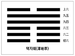 종교, 철학, 정치, 경제 등 모임의 방아쇠가 되는 요인은 너무도 많다. 차기 대선이 얼마 남지 않은 요즘, 많은 사람의 관심은 정치와 경제이며 그 성향에 따라 모임이 이루어지고 있다. 대통령을 향한 대선주자들은 각 정당에 모여 자웅을 겨루고 있고 지지자들은 그 정당에서 모임을 갖게 된다. 이러한 모임이 잘 이루어지기 위해서 어떻게 해야 할지 또 주의해야 할 점은 무엇인지 주역의 택지췌(澤地萃) 괘에서 힌트를 얻고자 한다.