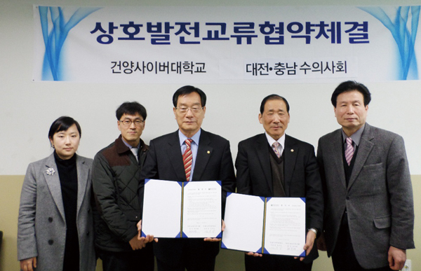 대전·충남수의사회(회장 전무형)와 건양사이버대학교가 지난 12월 29일(월) 오전 10시 건양사이버대 부총장실에서 상호발전을 위한 MOU를 체결했다.