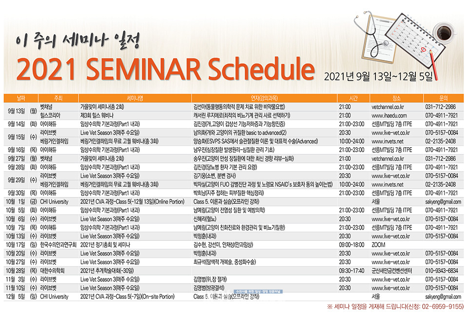 [세미나 캘린더] 2021년 9월 13일~12월 5일