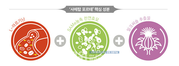 ‘사메탑 포르테’는 SAMe, L-아르기닌의 함량을 대폭 늘리고, 더 높아진 순도의 밀크씨슬 추출물로 만들어졌다.
