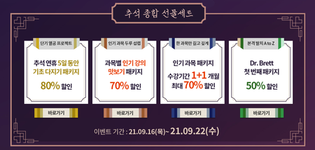 추석 이벤트 총 4가지로 △단기 열공 프로젝트 △인기 과목 두루 섭렵 △한 과목만 길고 깊게 △본격 발치 A to Z로 구성됐다.